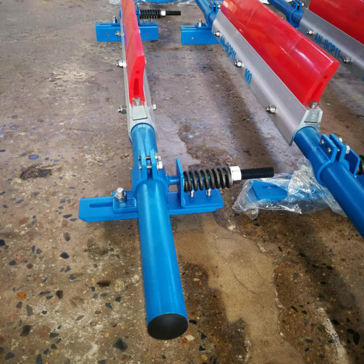 P型清扫器,即为工作面清扫器,安装于皮带机头部下方, 主要清扫皮带工作面,去除残积的物料,如果皮带清扫器失效, 会有很多不良影响;
